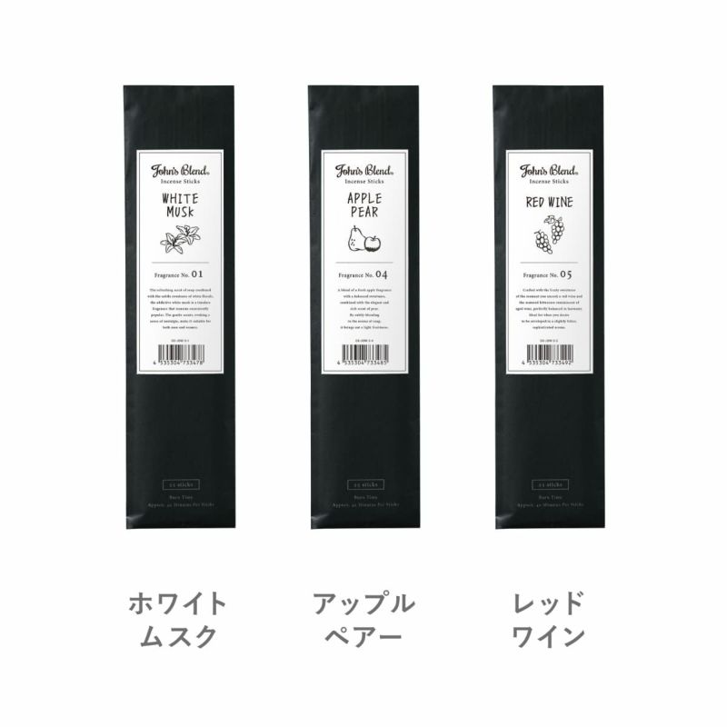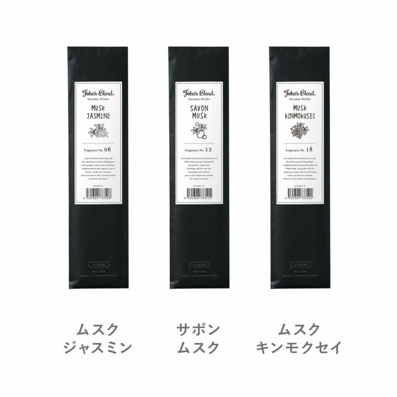 豊富な香りのラインナップも、ジョンズブレンドが支持される理由。 インセンスの香りはブランドの中でも人気の高い6種類。 その日の気分や使うシーン、季節などに合わせて選べるから、香りのある暮らしがもっと楽しく、もっと自分らしくなります。