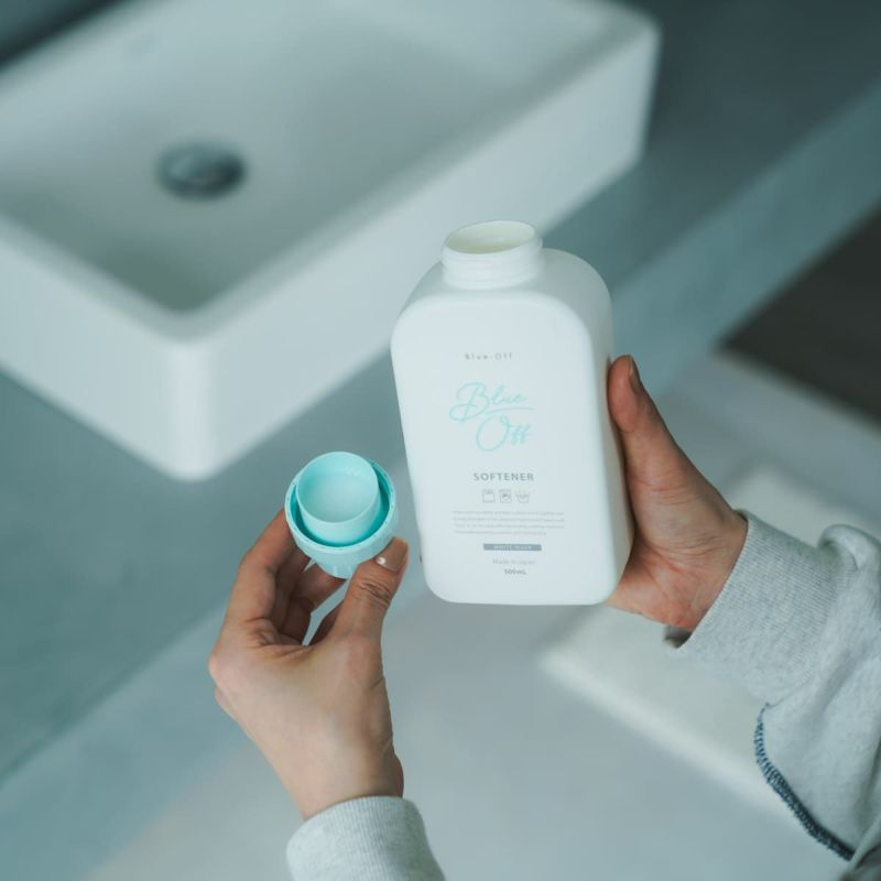 Blue Offのソフナーは、植物由来の柔軟成分を配合。 大切な衣類をふっくらやわらかに仕上げます。 洗濯機の種類や洗濯物の量に合わせて適量を入れて使いましょう。 例えばドラム式洗濯機に4.5kgほどの洗濯物を入れた場合は、キャップ1杯程度(約40mL)が適量です。
