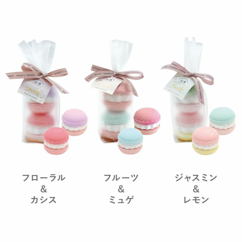 2色の可愛いマカロン型入浴料がセットになった贅沢アイテム。 まったく異なる香りが楽しめるのが、このセットならではの魅力です。 可愛いだけでなく、2個セットならバスタイムに合わせて使い分けもできて贅沢にお楽しみいただけます。