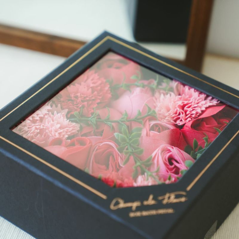 高級感のある黒箱に美しく詰められており、贈り物として最適です。 ギフトとして贈ると、開けた瞬間から特別感が広がります。 見た目の美しさはもちろん、香りも抜群。受け取った人にとって、心温まるプレゼントになります。