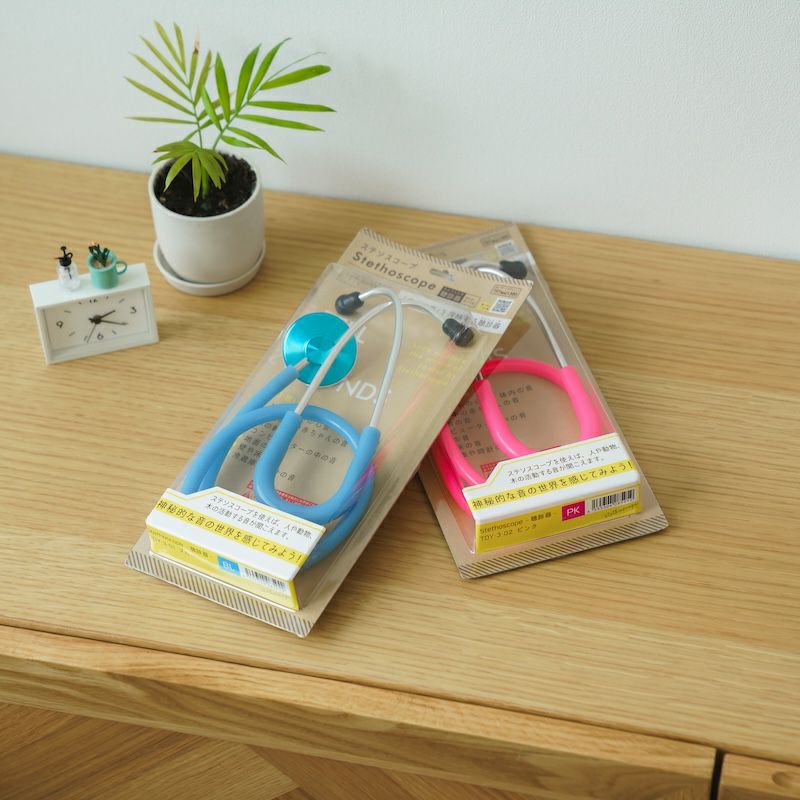1816年、フランスの医師ラエネックが、子どもの遊びをヒントに木製の聴診器を発明したことがはじまり。 本品はその歴史にインスピレーションを受けた、科学への入り口としてのプロダクトです。 ※医療器具ではありません。 選べる2色の展開。 お子さまに人気のブルー、ピンクをご用意しています。