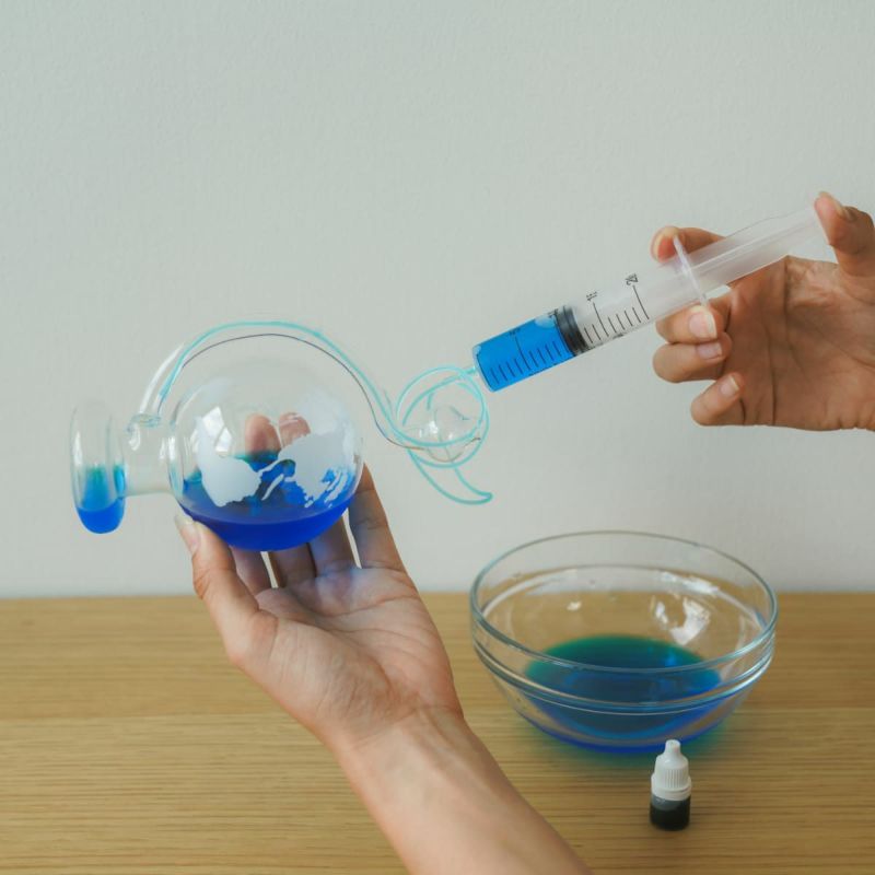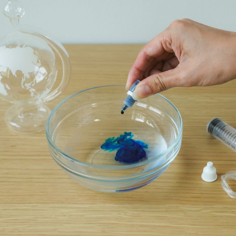 水を入れた晴雨予報グラスを平らな場所に設置して観察開始! 一般的に気圧が上がると天気は良くなり、気圧が下がれば雲ができ、天気は悪くなります。 ・管の水の位置が標準位置より低い時⇨高気圧を示し、「晴れ」が予想されます。 ・管の水の位置が標準位置より高い時⇨低気圧を示し、「悪天候」が予想されます。 予報と実際の天気は正確に一致するわけではないので、いろいろな環境で試して、経験値を積みながら天気予報をお楽しみください。 ※詳しい使い方は、本品の取扱説明書をよくご覧ください。
