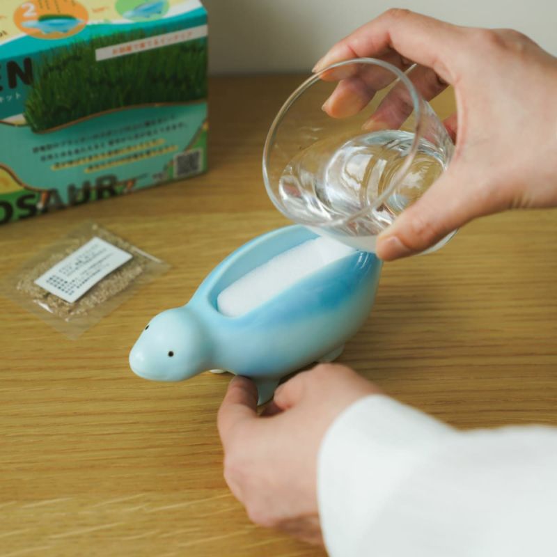 グリーンダイナソーは、プランター、土台となるスポンジ、 専用の種がセットになっています。