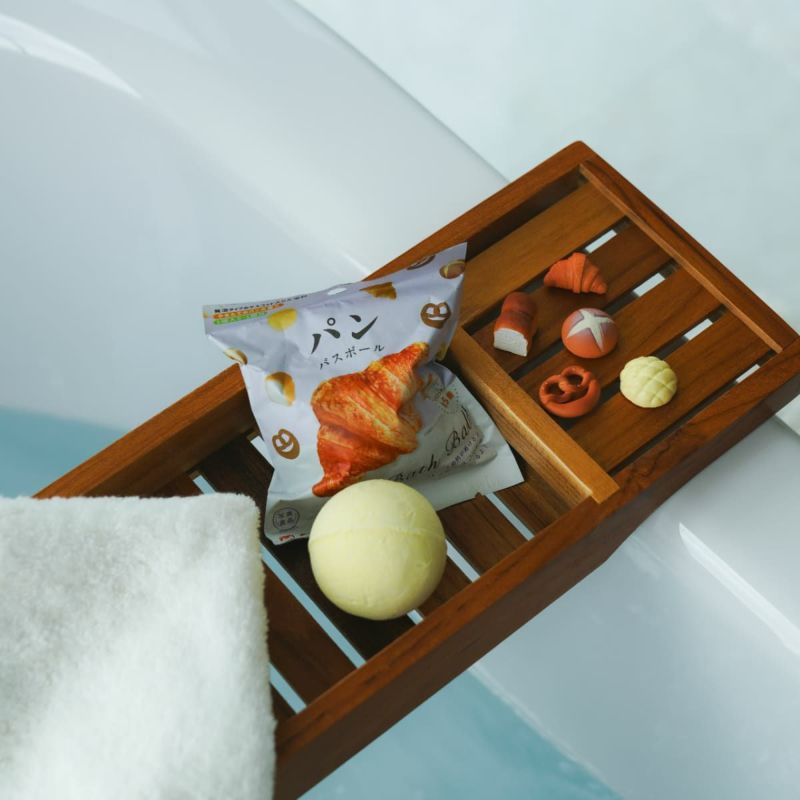 お湯に入れるとしゅわしゅわと溶けて、ふわっと広がるやきたてパンの香り。 中から現れるのは、リアルな見た目にこだわったパンモチーフのマスコット。 まるでパン屋さんにいるような気分で、香りと見た目を一緒に楽しめるユニークな入浴料です。
