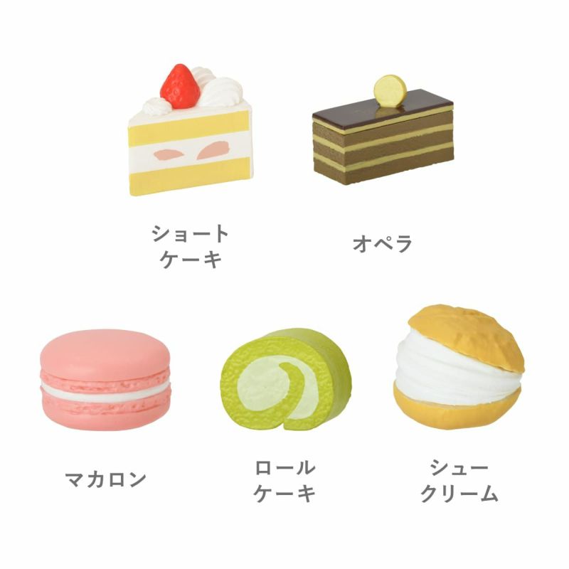 スポンジの質感やクリームの艶感までこだわった、洋菓子モチーフのミニチュアマスコットが1つ入っています。 全部で5種類、どれが出てくるかはお風呂に入れてからのお楽しみ。コンプリートしたくなる可愛さです。