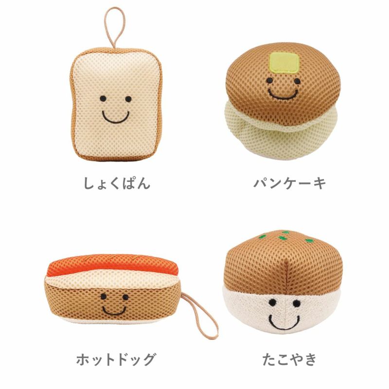 「クッキングボディスポンジ」は、食パン・パンケーキ・ホットドッグ・たこ焼きの4種類。