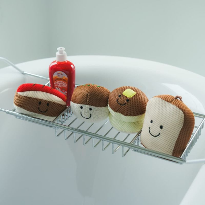 まるで本物みたいな食べ物型のスポンジで、お料理ごっこを楽しみながら、泡たっぷりのバスタイムが過ごせます。