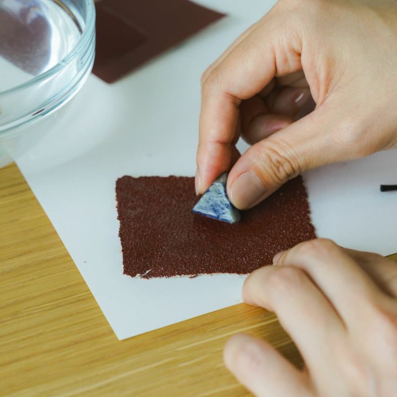 石によって硬さが違うので、付属の紙やすりで削って、硬さの違いを実感してみましょう。