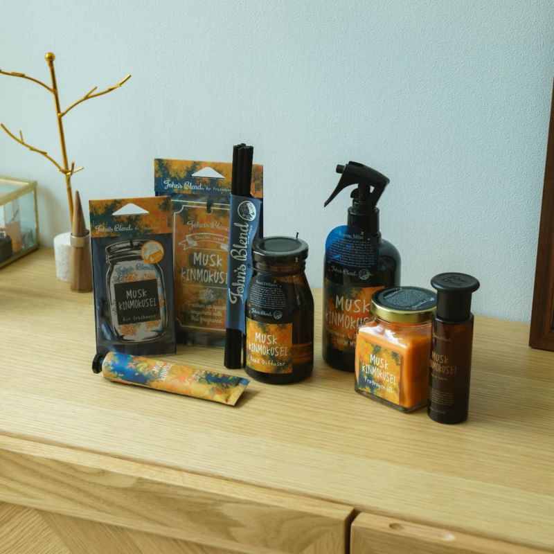 MUSK KINMOKUSEI(ムスクキンモクセイ)は、秋を感じる季節限定の香り。 キンモクセイ、アップル、ペアのフルーティーなトップノートから、ムスクやウッディが香るラストノートへと移ろい、甘さと落ち着きを絶妙にブレンド。 秋の空気にぴったりの奥行きある香りが、日常を心地よく彩ります。