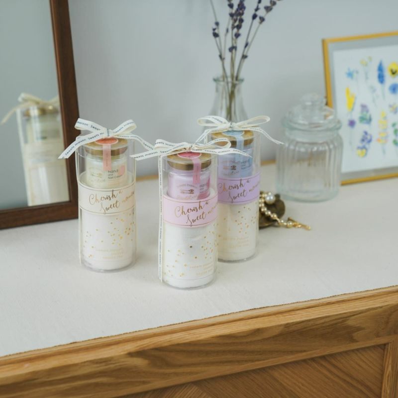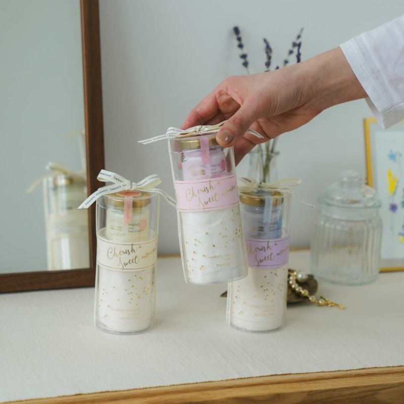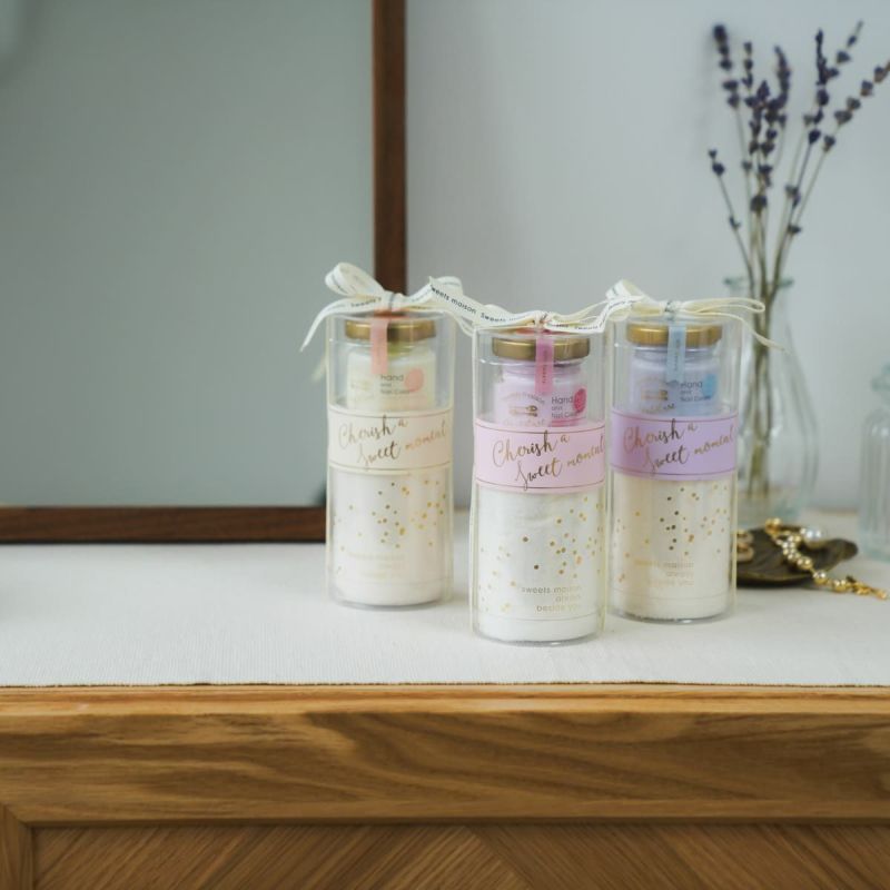 ハンドクリームは保湿成分配合で、ベタつかず手肌にすっと馴染む軽やかな使い心地。大切な人へのプレゼントにぴったりです。