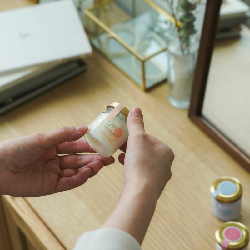 手に伸ばすと、甘く優しい香りが広がり、手肌をしっとり包み込む贅沢なひとときを楽しめます。