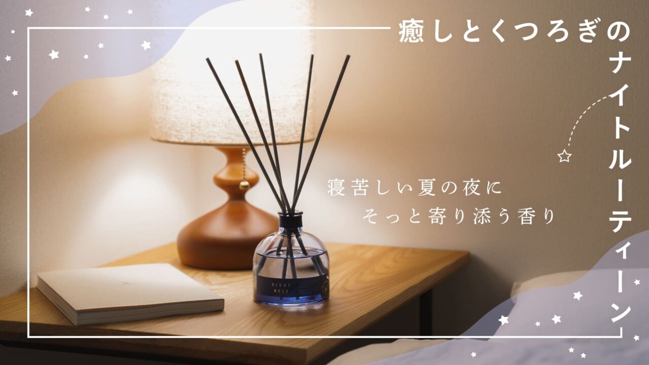 癒しとくつろぎのナイトルーティーン夏の夜は、暑さと湿気で寝つけない・眠りが浅いなどの悩みをお持ちの方も多いのではないでしょうか。そんな時こそ「香り」をプラスしてみませんか? 今回は、夏の寝室におすすめのルームフレグランスをご紹介です。 -